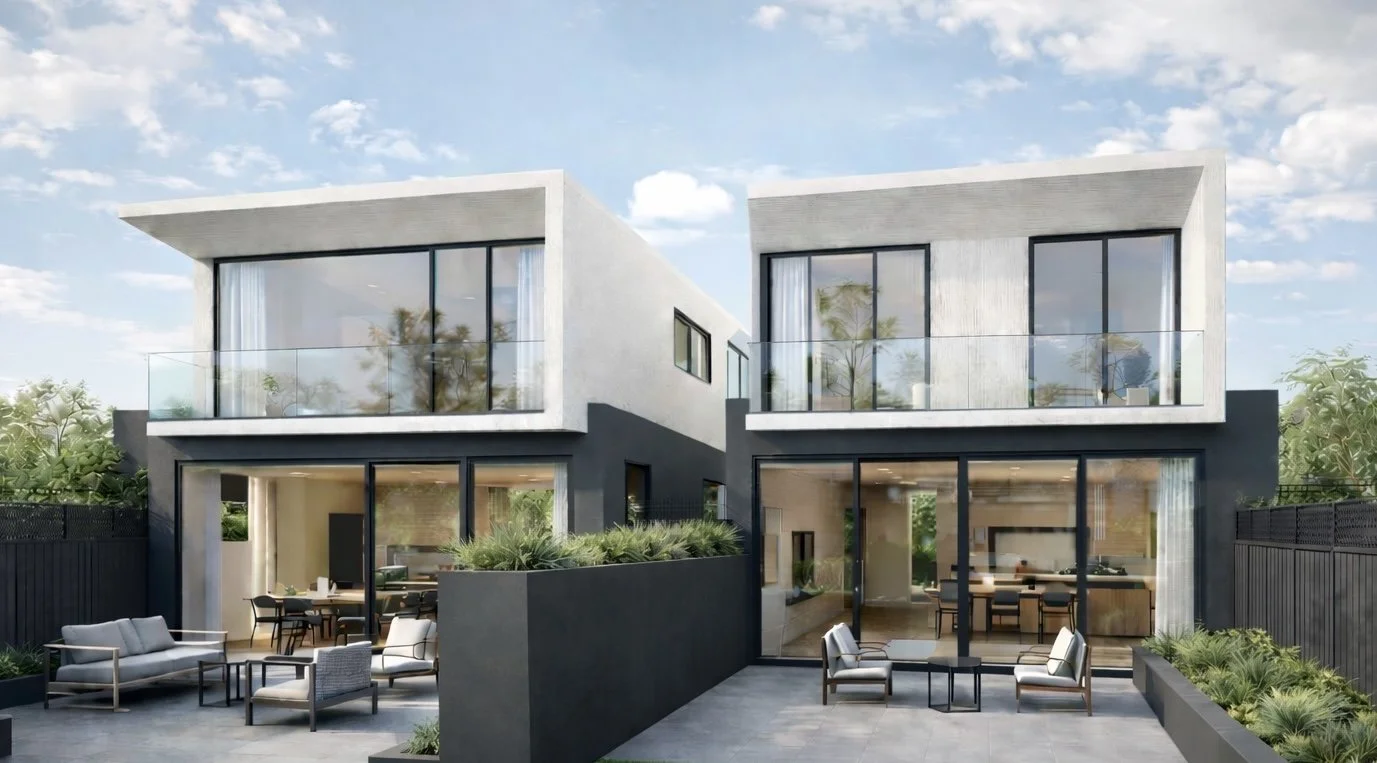 This design layout ensures that each of the 4 dwellings have their own driveway access, front yard and backyard that’s a kin to a setup similar to a house rather than townhouse. As a result each dwelling has its own identity and personality that’s responsive to its location on the site. Passive solar design plays an important role in the location of the windows and selection of materials that imbues elegance and exclusivity to the proposed development.
